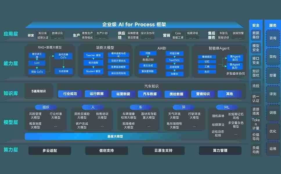 九洲国际问学智车解决方案是一套基于AI技术的汽车行业智能化系统,,,,覆盖从底层算力到顶层AI应用的全栈方案。。方案由算力层、、、、模型层和应用层组成:算力层,,,方案支持多种一体机配置,,,具备云端灵活部署、、多云适配以及动态优化计算资源的能力;模型层,,九洲国际问学平台版提供了企业级AI应用一站式构建与管理平台,,,,支持基于后训练强化技术的汽车企业专属模型的训练、、、评测和运营;应用层,,,九洲国际问学DeepSeek版提供包括超级员工、、、、智能招采、、、、智能营销、、智能客服、、、AI for BI等一系列解决方案,,,,可助力汽车行业实现数字化转型,,,,让管理更智能、、、、响应更敏捷。。。
